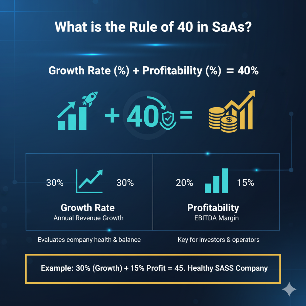 The Rule of 40 is especially helpful for SaaS entrepreneurs and agencies evaluating whether to reinvest heavily in growth or prioritize profitability.